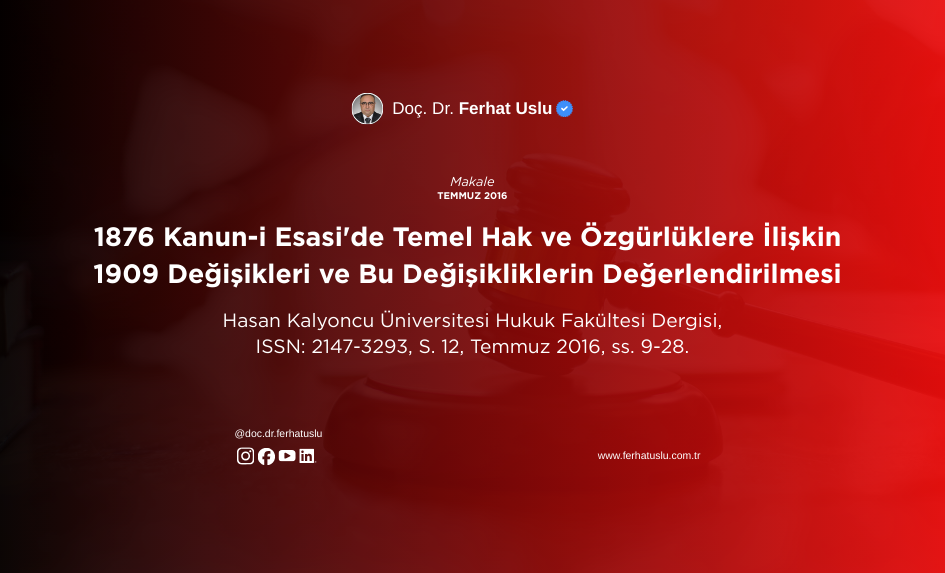 1876 Kanun-i Esasi’de Temel Hak ve Özgürlüklere İlişkin 1909 Değişikleri ve Bu Değişikliklerin Değerlendirilmesi