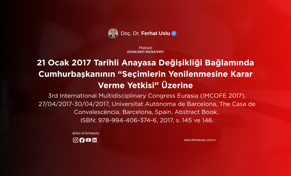 21 Ocak 2017 Tarihli Anayasa Değişikliği Bağlamında Cumhurbaşkanının “Seçimlerin Yenilenmesine Karar Verme Yetkisi” Üzerine