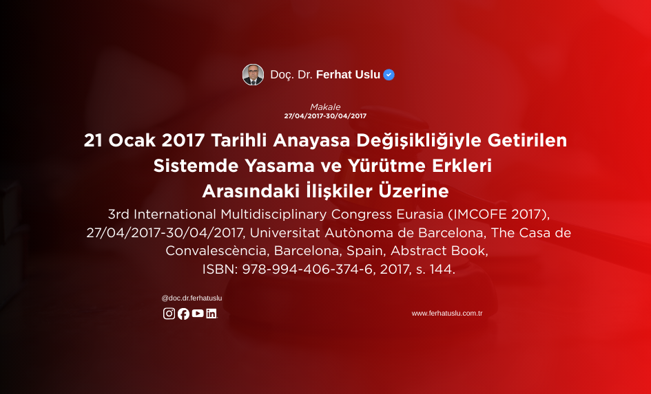21 Ocak 2017 Tarihli Anayasa Değişikliğiyle Getirilen Sistemde Yasama ve Yürütme Erkleri Arasındaki İlişkiler Üzerine