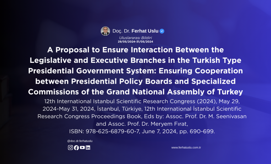 A Proposal to Ensure Interaction Between the Legislative and Executive Branches in the Turkish Type Presidential Government System: Ensuring Cooperation between Presidential Policy Boards and Specialized Commissions of the Grand National Assembly of Turkey