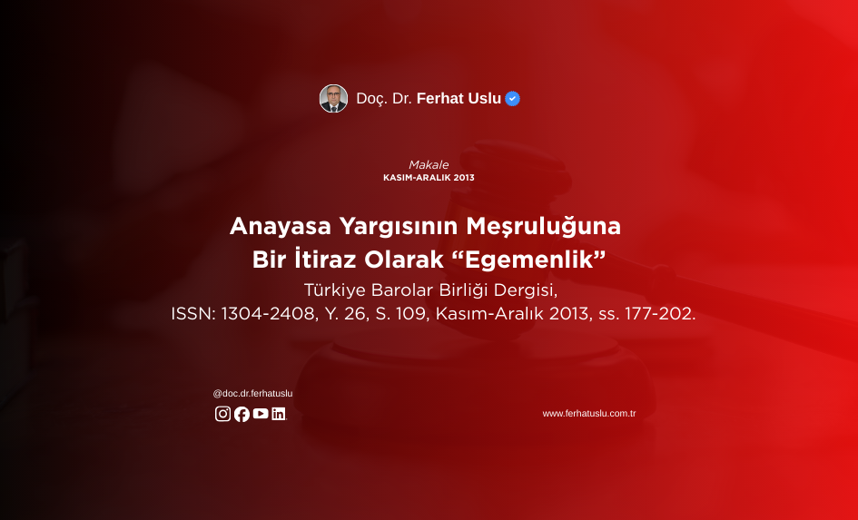 Anayasa Yargısının Meşruluğuna Bir İtiraz Olarak “Egemenlik”
