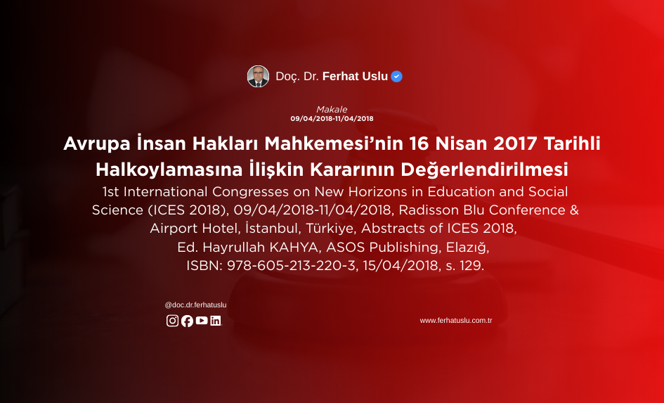 Avrupa İnsan Hakları Mahkemesi’nin 16 Nisan 2017 Tarihli Halkoylamasına İlişkin Kararının Değerlendirilmesi
