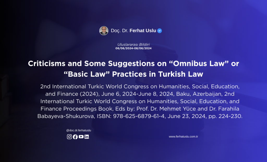 Criticisms and Some Suggestions on “Omnibus Law” or “Basic Law” Practices in Turkish Law