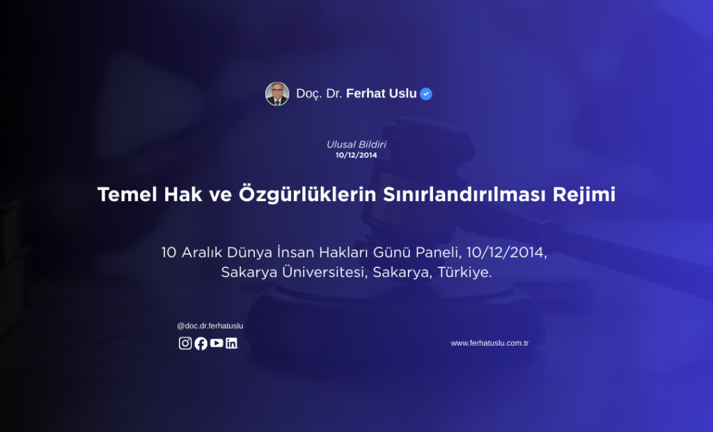 Sakarya Valiliği Tarafından Düzenlenen 10 Aralık Dünya İnsan Hakları Günü Paneli’nde Sunulan Tebliğ, 10.12.2014, Sakarya Üniversitesi, Sakarya, Türkiye