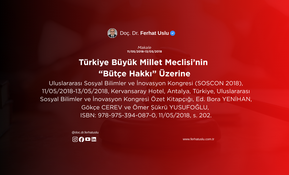 Uluslararası Sosyal Bilimler ve İnovasyon Kongresi (SOSCON 2018), 11/05/2018-13/05/2018, Kervansaray Hotel, Antalya, Türkiye, Uluslararası Sosyal Bilimler ve İnovasyon Kongresi Özet Kitapçığı, Ed. Bora YENİHAN, Gökçe CEREV ve Ömer Şükrü YUSUFOĞLU, ISBN: 978-975-394-087-0, 11/05/2018, s. 202.