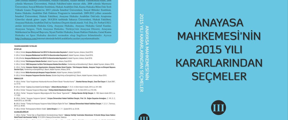 Anayasa Mahkemesi’nin Kararlarından Seçmeler (2016-2017)