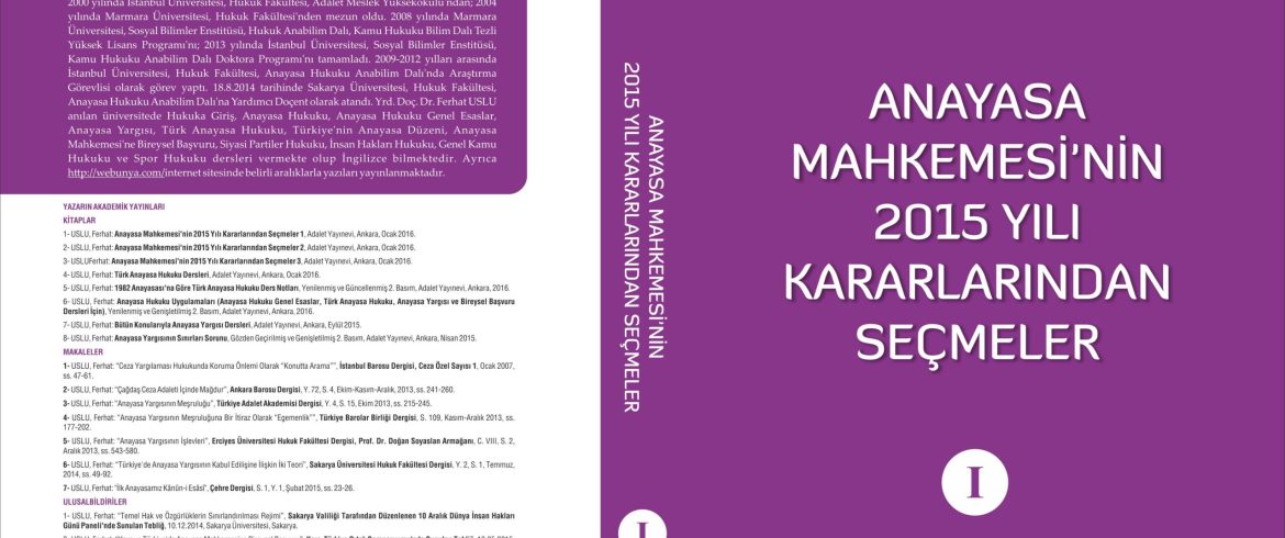 Anayasa Mahkemesi’nin 2015 Yılı Kararlarından Seçmeler (4 Cilt)