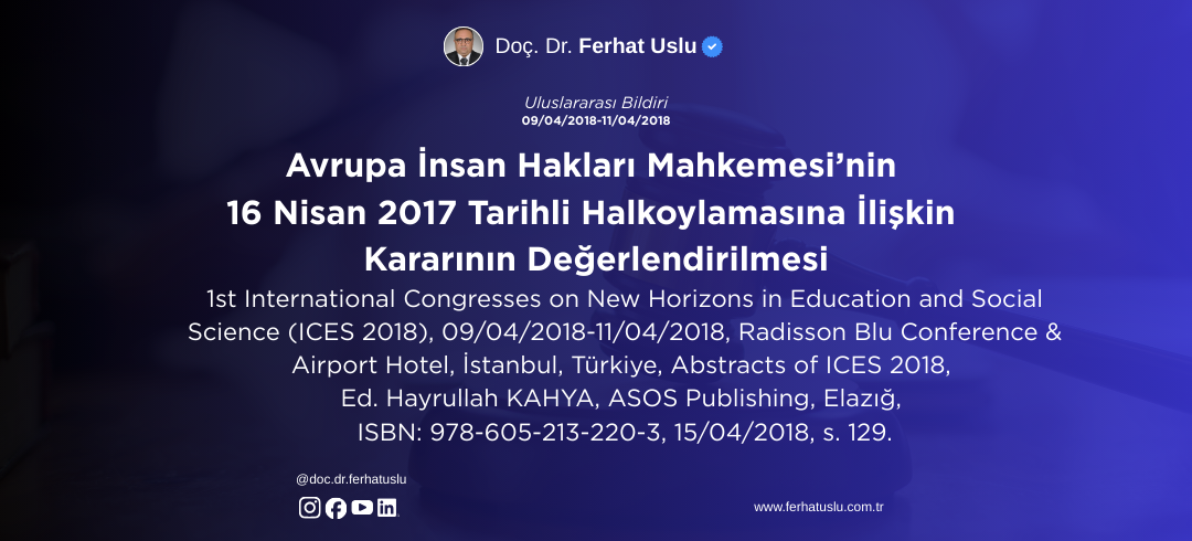 Avrupa İnsan Hakları Mahkemesi’nin 16 Nisan 2017 Tarihli Halkoylamasına İlişkin Kararının Değerlendirilmesi