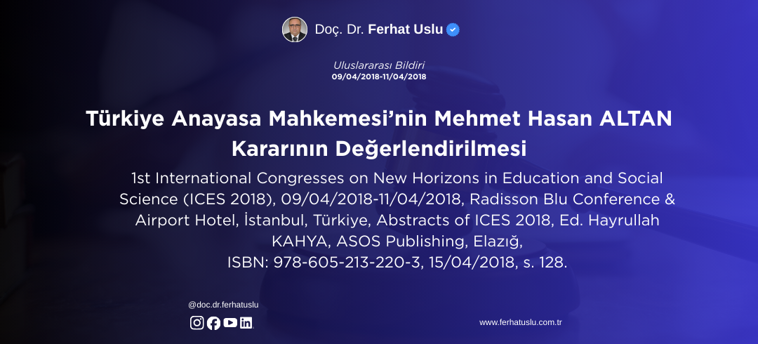 Türkiye Anayasa Mahkemesi’nin Mehmet Hasan ALTAN Kararının Değerlendirilmesi