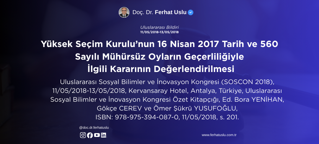 Yüksek Seçim Kurulu’nun 16 Nisan 2017 Tarih ve 560 Sayılı Mühürsüz Oyların Geçerliliğiyle İlgili Kararının Değerlendirilmesi