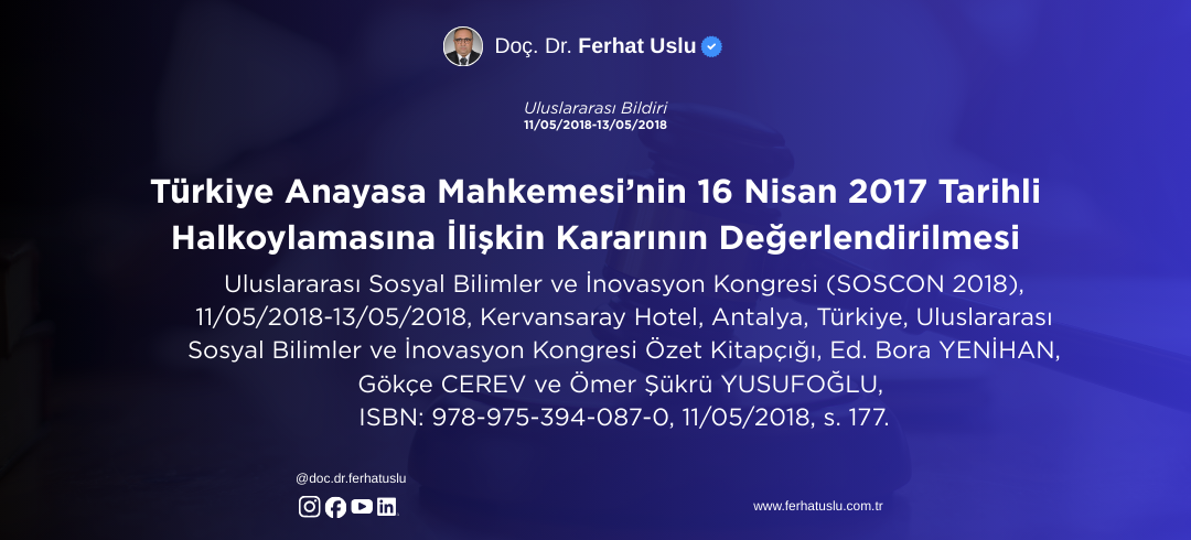 Türkiye Anayasa Mahkemesi’nin 16 Nisan 2017 Tarihli Halkoylamasına İlişkin Kararının Değerlendirilmesi