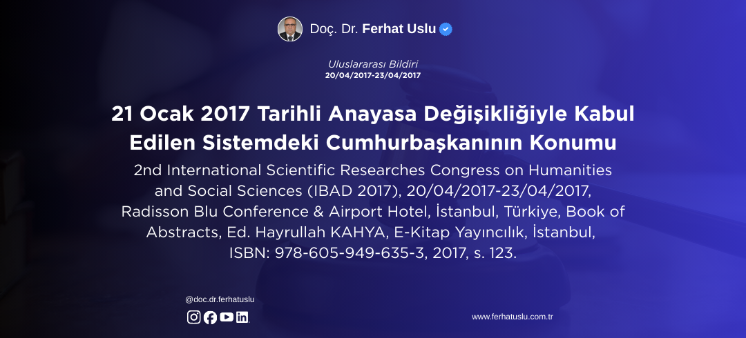21 Ocak 2017 Tarihli Anayasa Değişikliğiyle Kabul Edilen Sistemdeki Cumhurbaşkanının Konumu