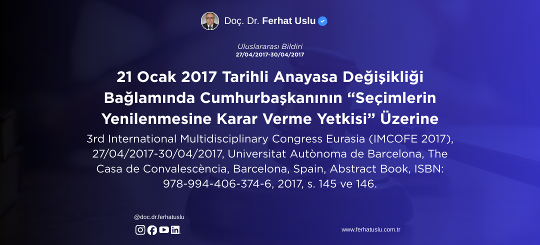 21 Ocak 2017 Tarihli Anayasa Değişikliği Bağlamında Cumhurbaşkanının “Seçimlerin Yenilenmesine Karar Verme Yetkisi” Üzerine