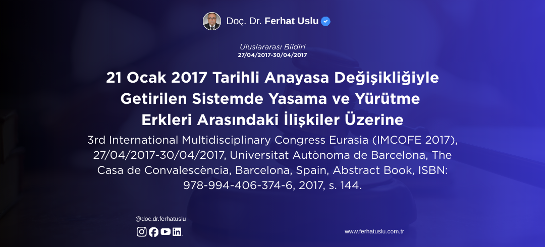 21 Ocak 2017 Tarihli Anayasa Değişikliğiyle Getirilen Sistemde Yasama ve Yürütme Erkleri Arasındaki İlişkiler Üzerine