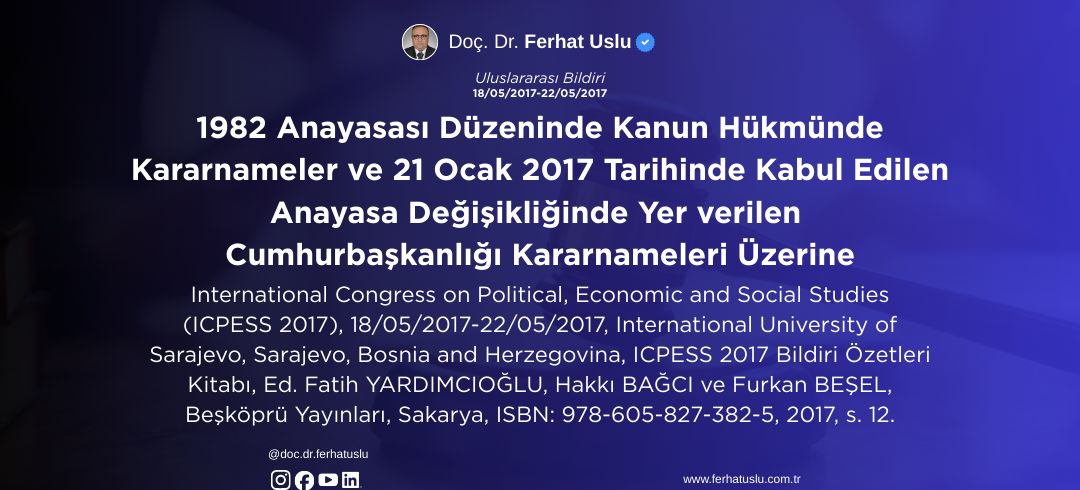 1982 Anayasası Düzeninde Kanun Hükmünde Kararnameler ve 21 Ocak 2017 Tarihinde Kabul Edilen Anayasa Değişikliğinde Yer verilen Cumhurbaşkanlığı Kararnameleri Üzerine