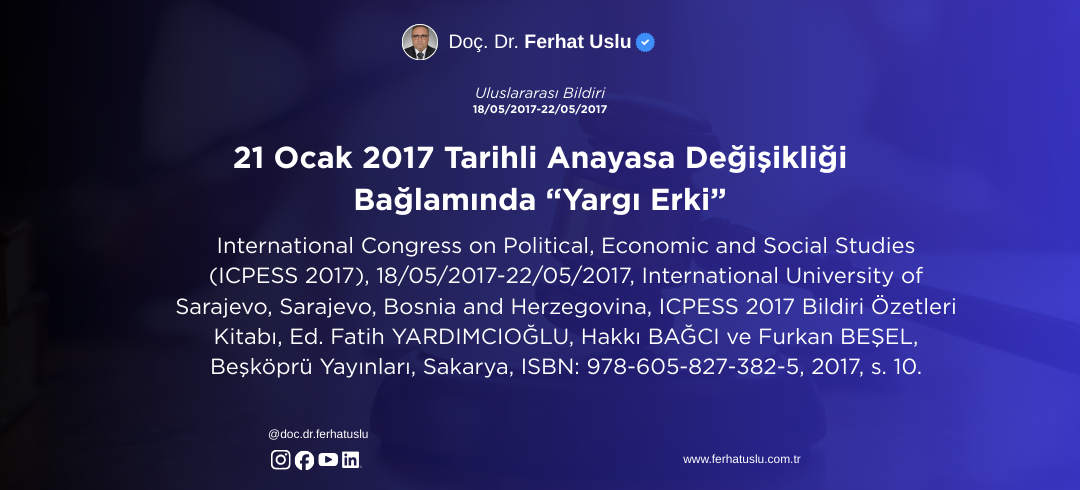 21 Ocak 2017 Tarihli Anayasa Değişikliği Bağlamında “Yargı Erki”