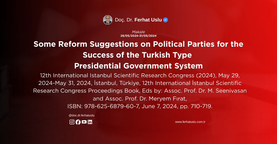 Some Reform Suggestions on Political Parties for the Success of the Turkish Type Presidential Government System