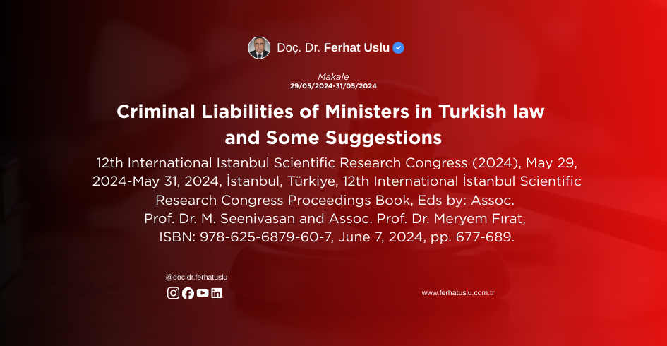 Criminal Liabilities of Ministers in Turkish law and Some Suggestions