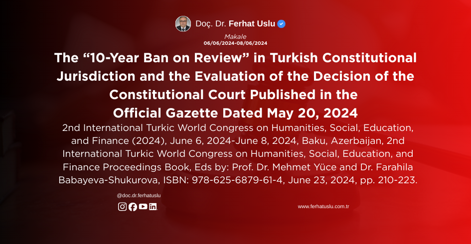 The “10-Year Ban on Review” in Turkish Constitutional Jurisdiction and the Evaluation of the Decision of the Constitutional Court Published in the Official Gazette Dated May 20, 2024