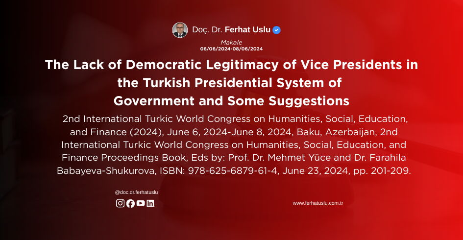 The Lack of Democratic Legitimacy of Vice Presidents in the Turkish Presidential System of Government and Some Suggestions