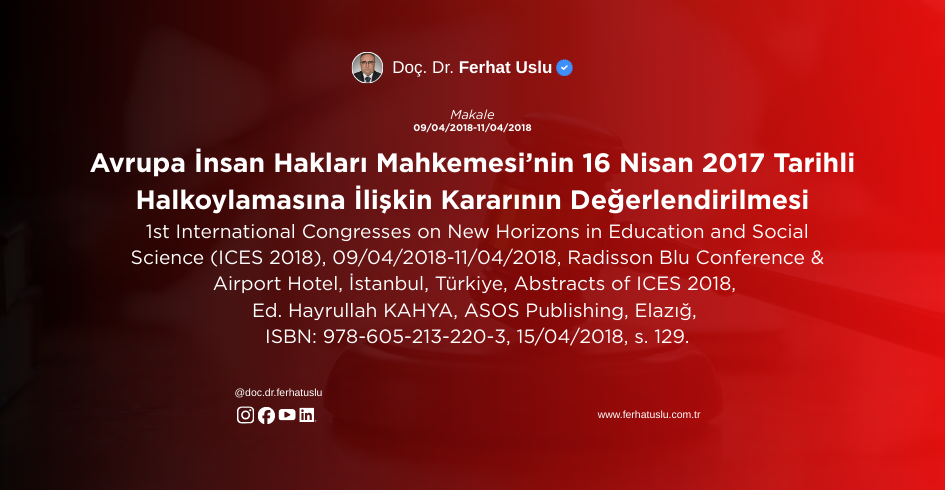 Avrupa İnsan Hakları Mahkemesi’nin 16 Nisan 2017 Tarihli Halkoylamasına İlişkin Kararının Değerlendirilmesi