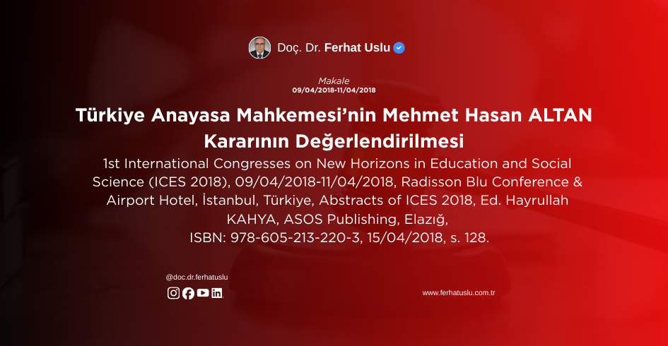 Türkiye Anayasa Mahkemesi’nin Mehmet Hasan ALTAN Kararının Değerlendirilmesi