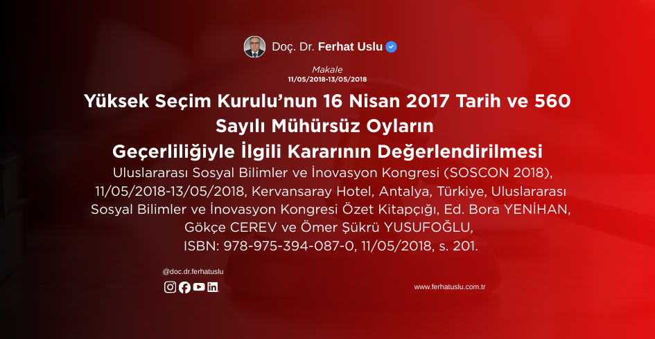 Yüksek Seçim Kurulu’nun 16 Nisan 2017 Tarih ve 560 Sayılı Mühürsüz Oyların Geçerliliğiyle İlgili Kararının Değerlendirilmesi