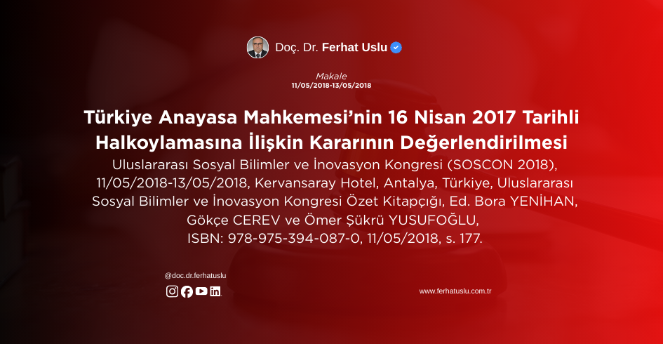 Türkiye Anayasa Mahkemesi’nin 16 Nisan 2017 Tarihli Halkoylamasına İlişkin Kararının Değerlendirilmesi