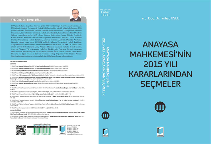 Anayasa Mahkemesi’nin 2015 Yılı Kararlarından Seçmeler, 3. Cilt, 1. Baskı