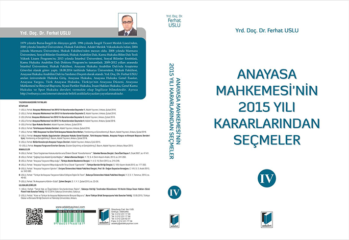 Anayasa Mahkemesi’nin 2015 Yılı Kararlarından Seçmeler, 4. Cilt, 1. Baskı