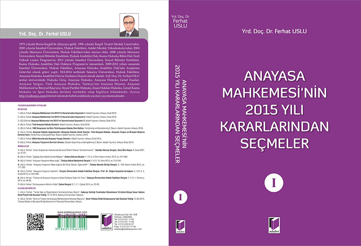 Anayasa Mahkemesi’nin 2015 Yılı Kararlarından Seçmeler, 1. Cilt, 1. Baskı