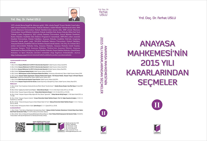 Anayasa Mahkemesi’nin 2015 Yılı Kararlarından Seçmeler, 2. Cilt, 1. Baskı