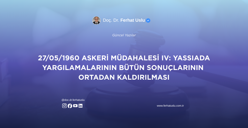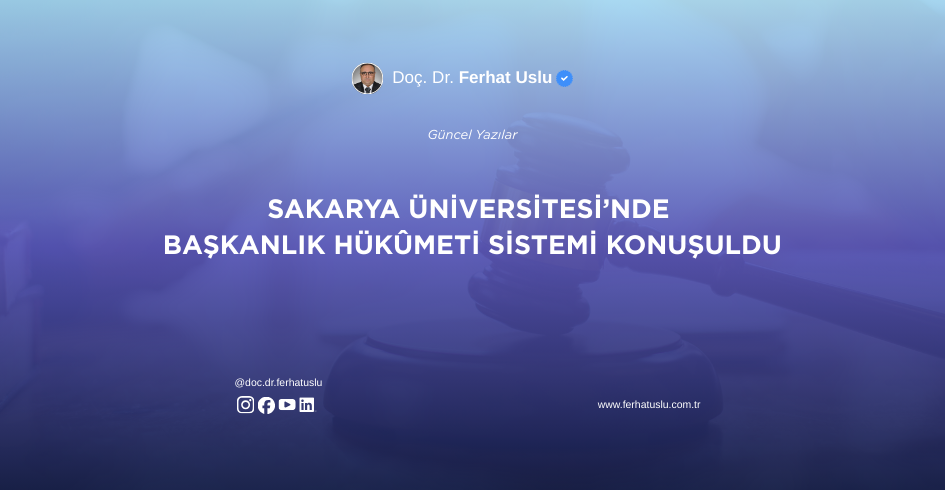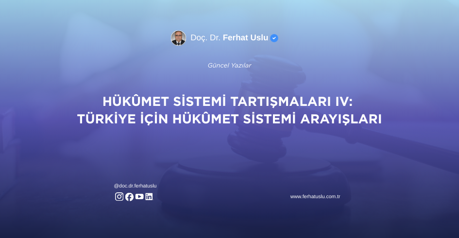 “Ferhat USLU, Türkiye’de Hükûmet Sistemi Tartışmaları ve Cumhurbaşkanlığı Hükûmet Sisteminde Yasama ve Yürütme Organları Arasındaki İlişkiler,” Yenilenmiş ve Güncellenmiş 6. Baskı, Yetkin Yayınevi, Ankara, 22/05/2025, ISBN: 978-605-05-2232-7, Sayfa Sayısı: 1.538. Künye bilgili kitap, ss. 798-827. Parlamenter Hükûmet Sistemi Uygulaması Döneminde Cumhurbaşkanlığı Görevini Yerine Getirenler, Cumhurbaşkanlığı Hükûmet Sistemi Uygulaması Dönemindeki Cumhurbaşkanı Seçimlerinde Aday Olabilir mi? Bilindiği […]
