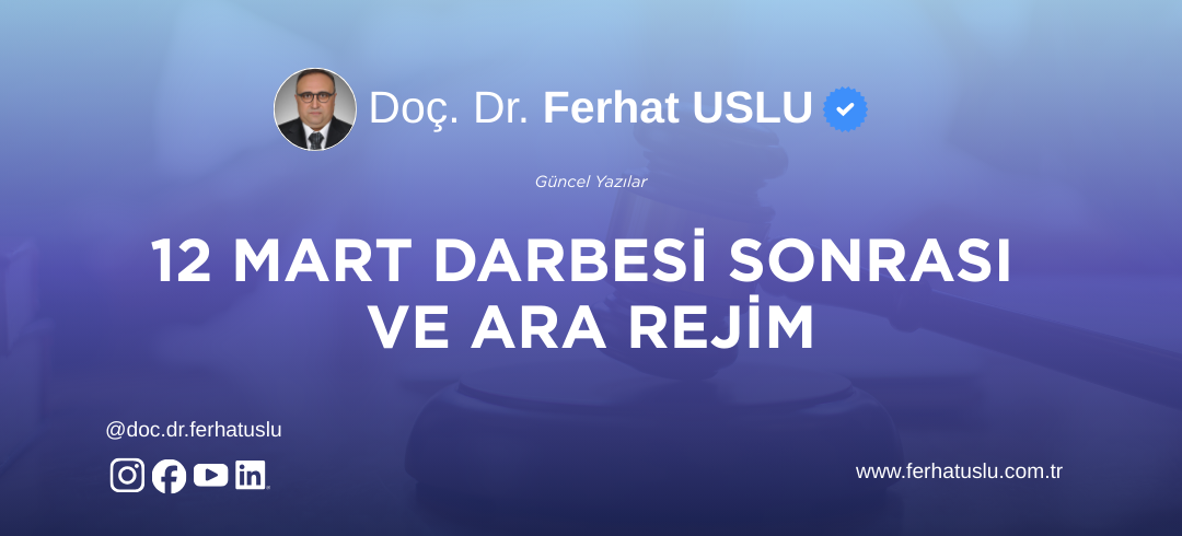 12 Mart Darbesi Sonrası ve Ara Rejim Önceki yazımda (12 Mart Darbesi, https://www.ferhatuslu.com.tr/12-mart-darbesi/) 12 Mart 1971 Darbesine gelinceye kadarki iç gelişmelerden (9 Mart olayı dışındaki) bahsetmiş ve darbenin muhtırası olan metne değinmiştim. Bu yazımda darbe sonrası tepkiler ve yaklaşık iki buçuk yıllık ara rejimden söz edeceğim. Muhtıra, hükûmete tebliğ edildiği gibi Cumhuriyet Senatosu ve Millet […]
